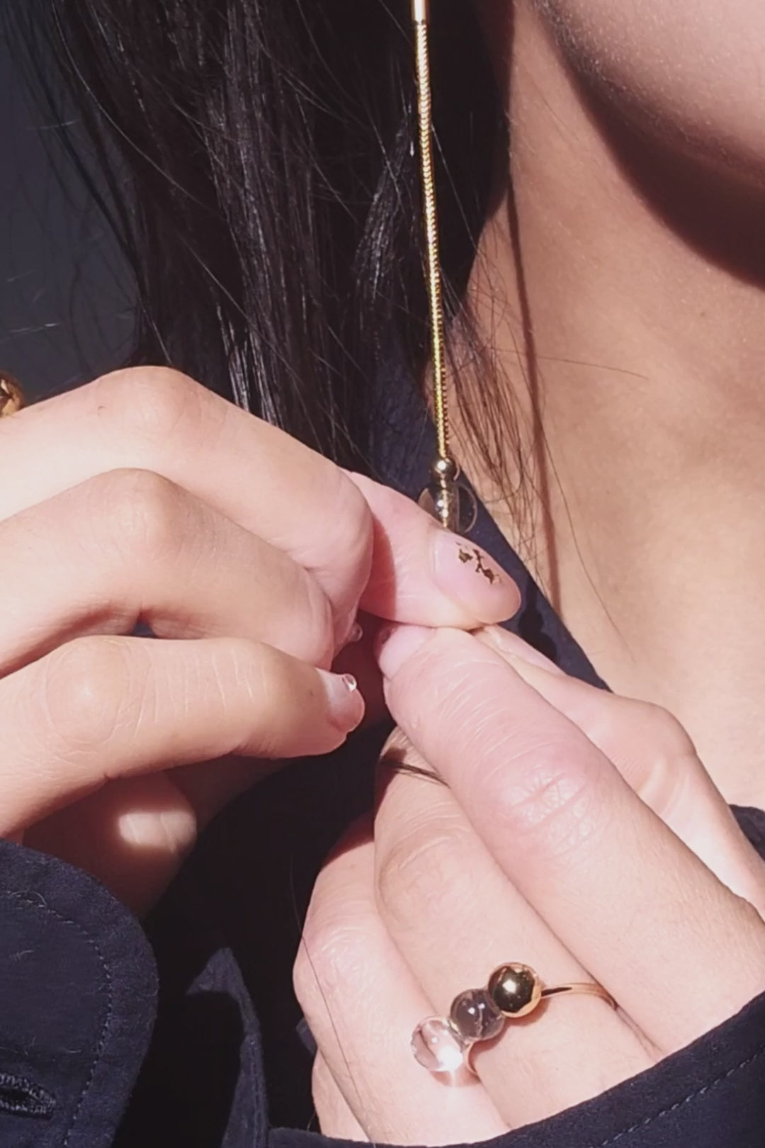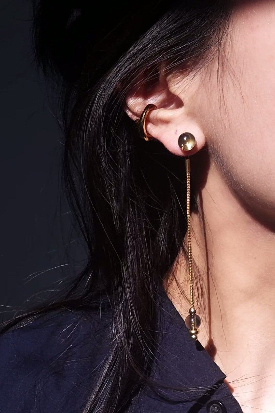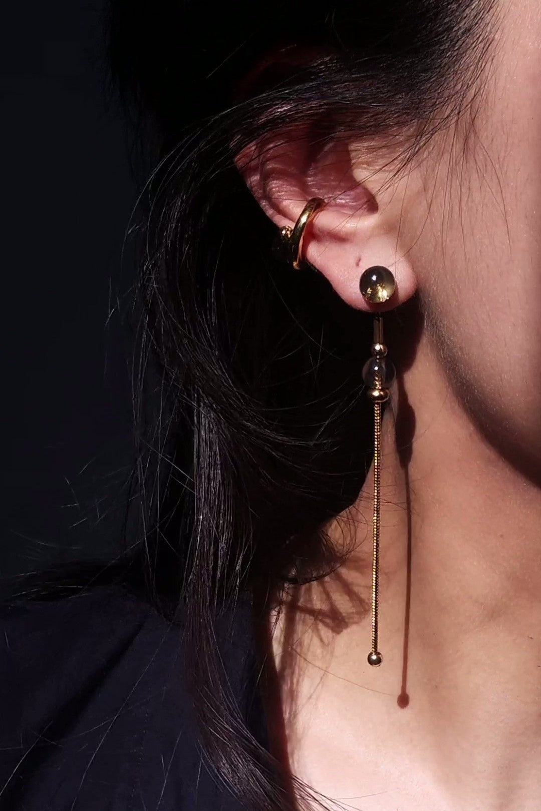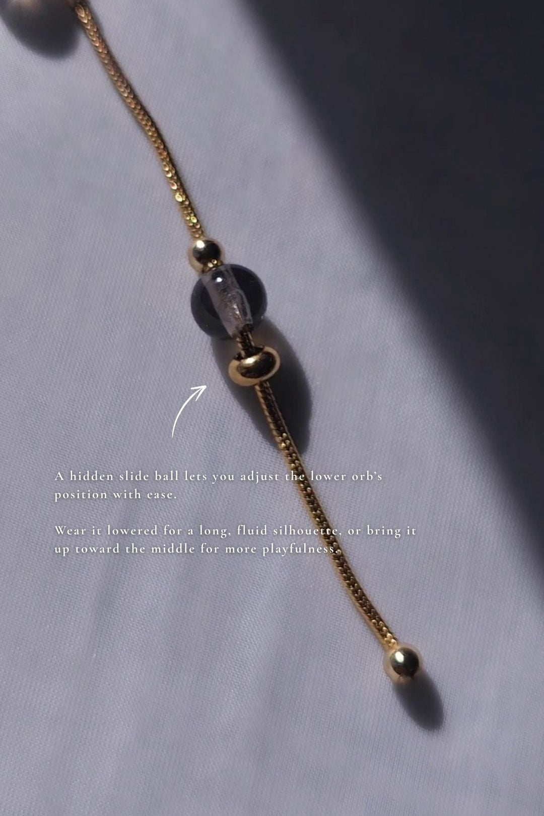 Paired with it is a detachable chain drop, finished with a matching 8 mm orb for a layered shadow-on-shadow effect.