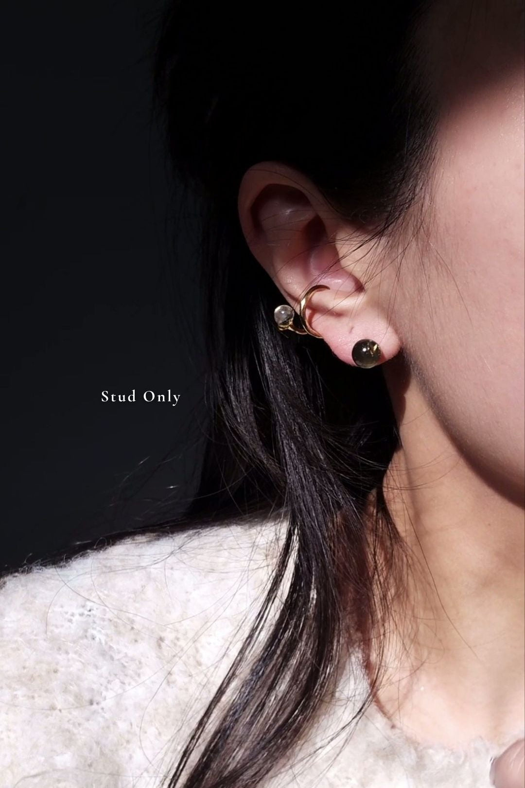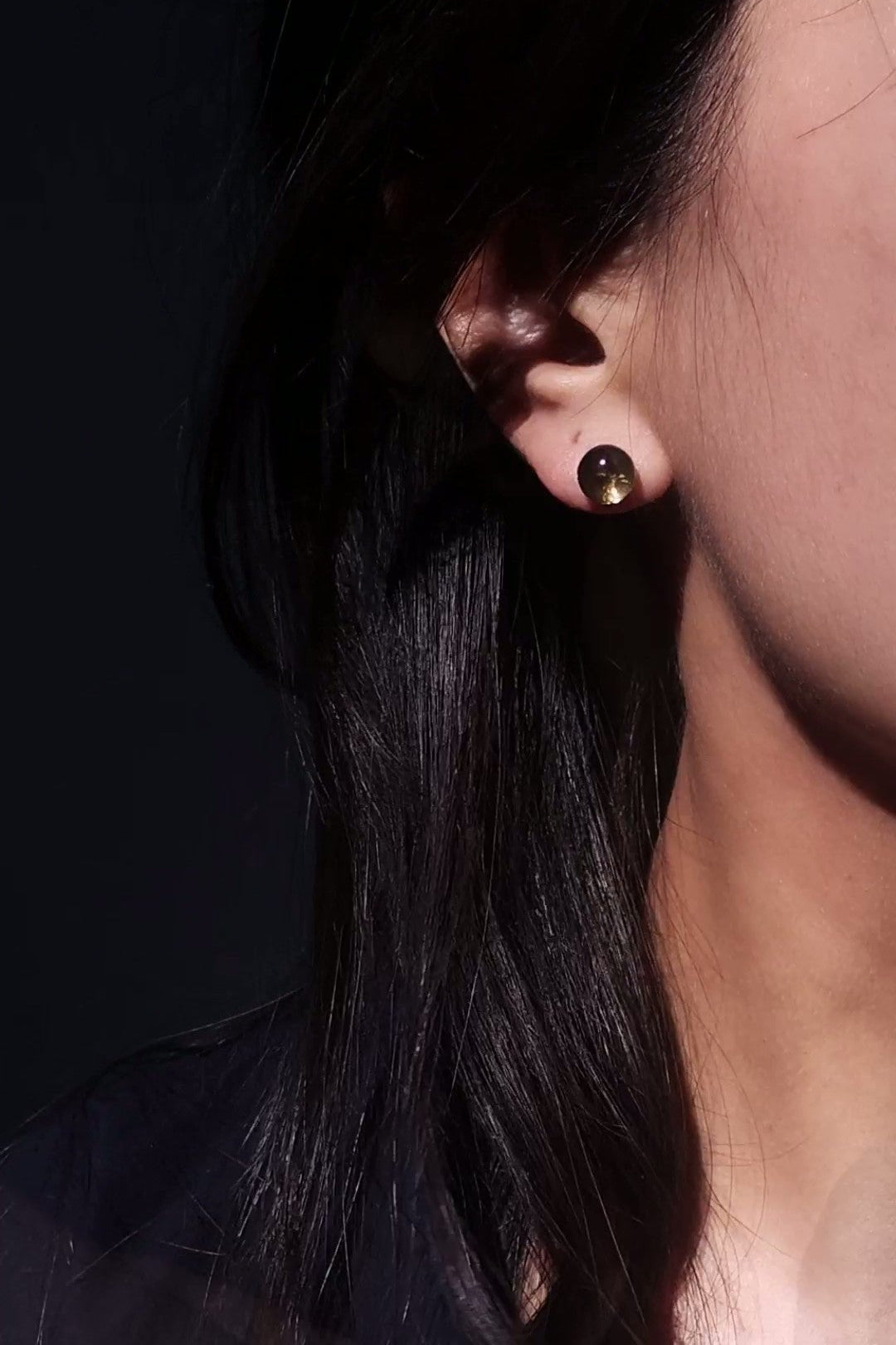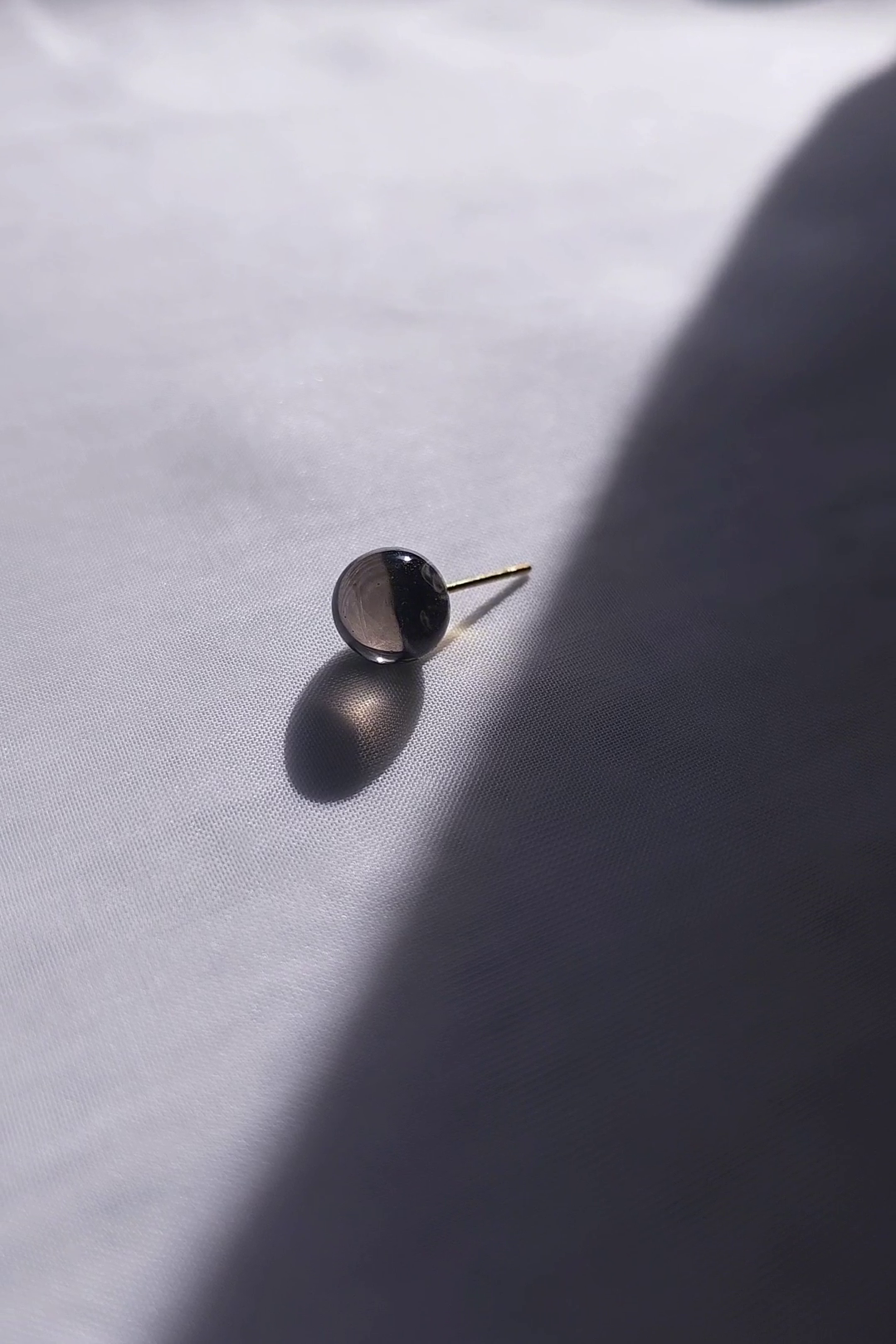 The stud features an 8 mm KAGE's signiture orb whose tone moves between smoky translucence and deeper black, depending on how the light touches it.