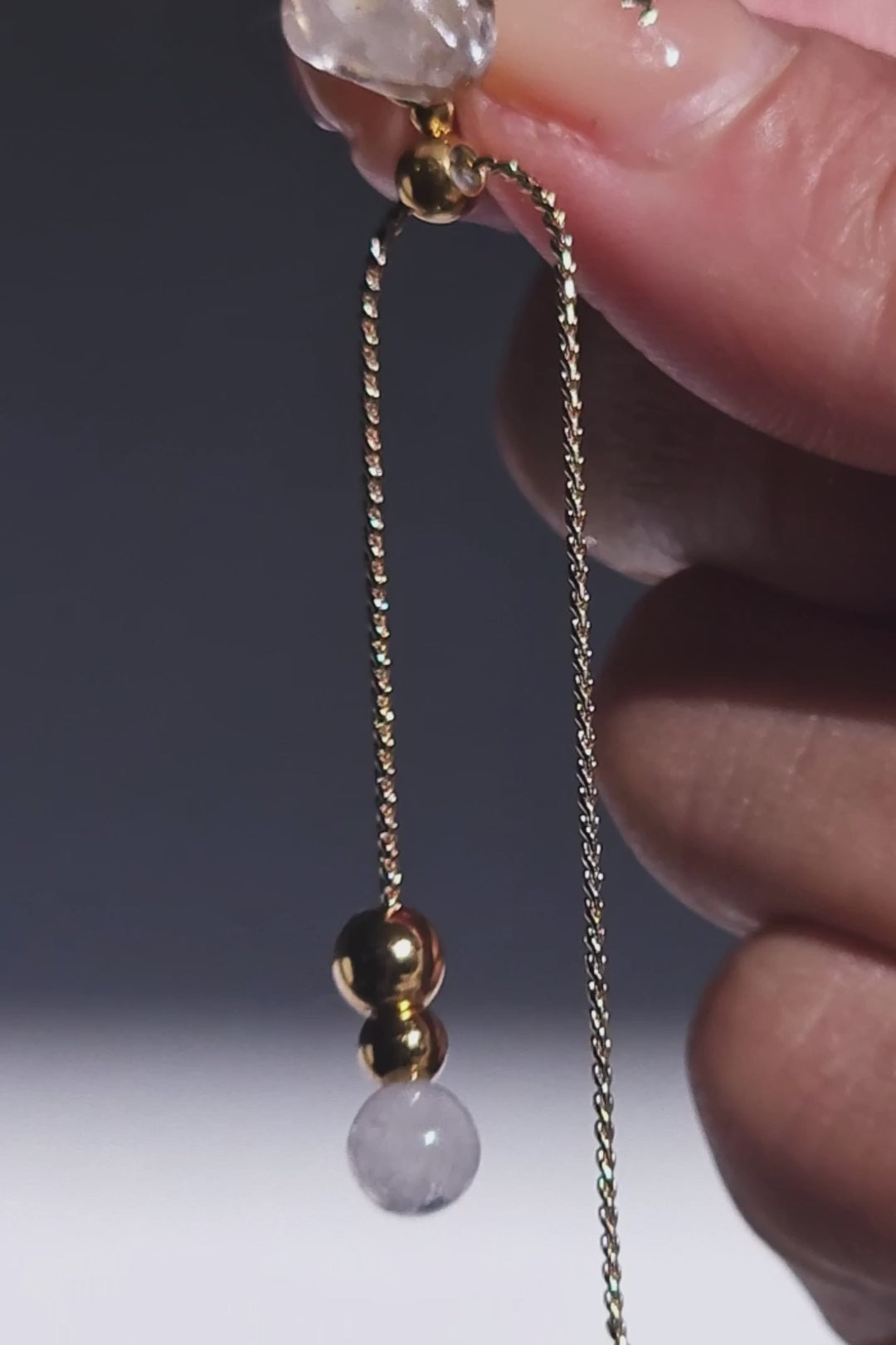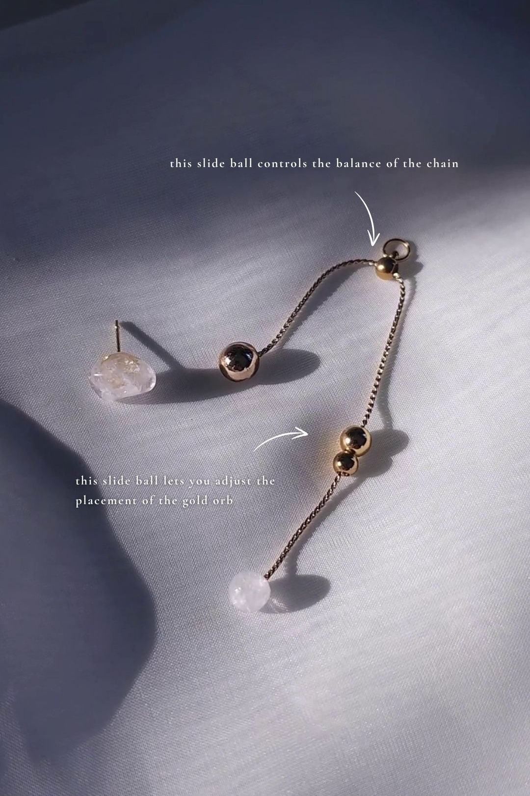 It comes with a detachable chain drop- one slide ball lets you adjust the placement of the gold orb, the other slide ball controls the balance of the chain.