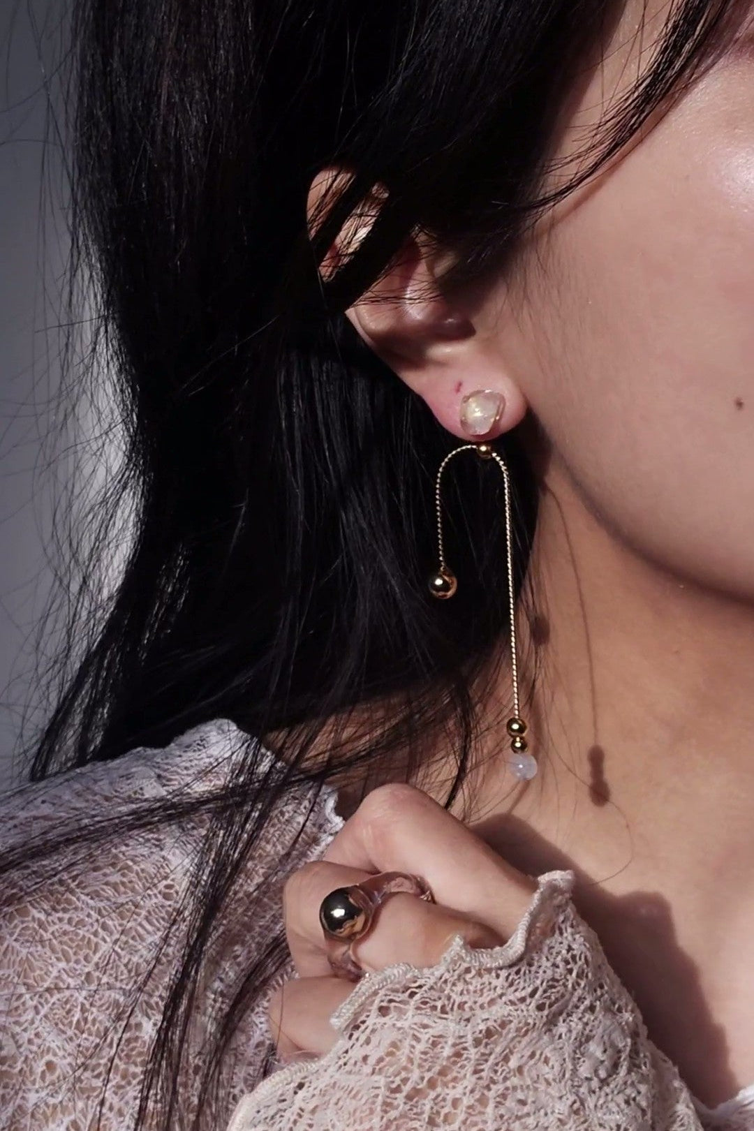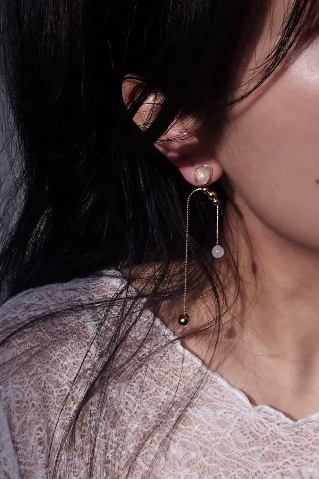 bought this as well as the short drop, wear them together in a pair and the asymmetry of it is perfect! not to mention the detachable chains that I can mix and match with each other, so many ways to wear them!
