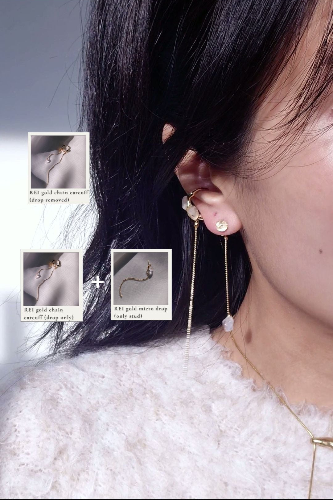 bought this as well as the short drop, wear them together in a pair and the asymmetry of it is perfect! not to mention the detachable chains that I can mix and match with each other, so many ways to wear them!